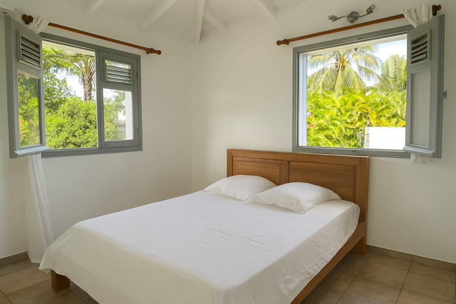 Elle se compose d’un séjour, d’une cuisine moderne, de deux chambres climatisées, d’une salle d’eau en commun avec WC ainsi que d’une chambre principale avec salle d’eau attenante et WC.