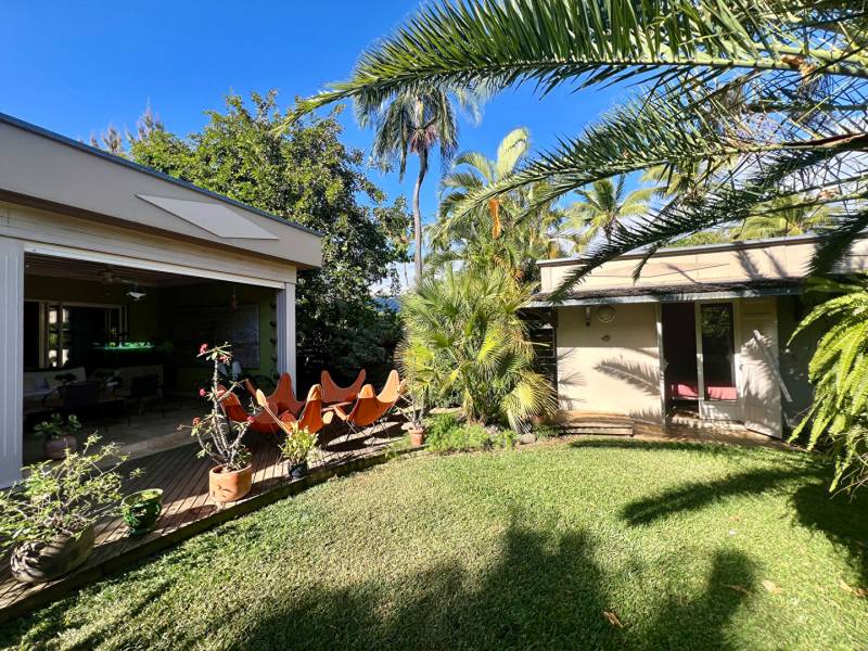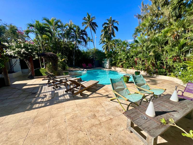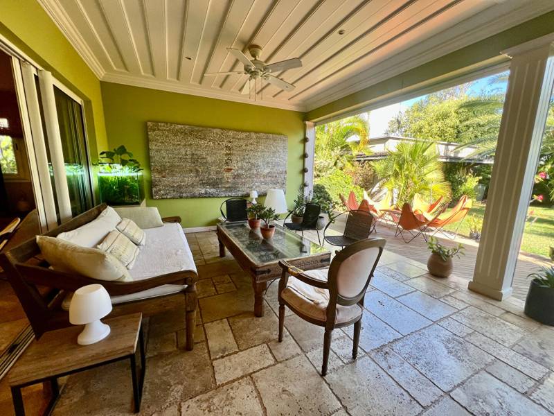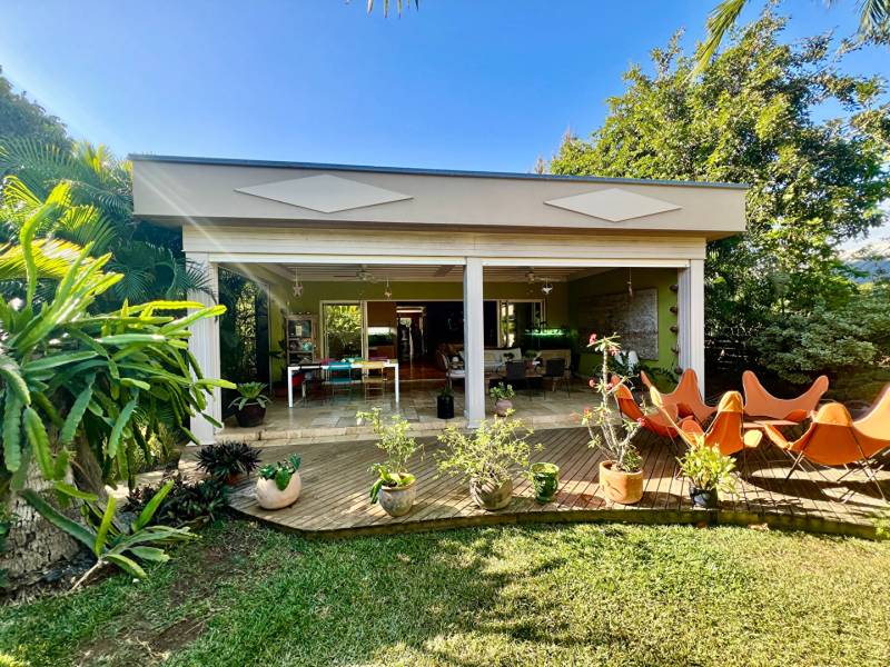 Au coeur du quartier le plus prisé du littoral et à deux minutes à pied du Lagon de l'Hermitage, venez découvrir cette villa tout en travertin, en parfait état, nichée au coeur d'une magnifique parcelle arborée de 1100m2. Cet ensemble immobilier, atypique par sa conception, offre environ 161m2 habitables et 200m2 utiles. La villa principale de 115m2 hab dispose d'une grande pièce de vie de 52m2 avec belle hauteur sous plafond, une cuisine et arrière cuisine, une suite parentale, un wc et une magnifique varangue de plus de 30m2 face à un jardin luxuriant. + Deux dépendances : chambre et salle d'eau/wc, dont une avec accès pouvant être privatif. Vous découvrirez également un très grand espace de vie extérieur avec cuisine d'été et une piscine avec jacuzzi intégré. Buanderie, abris voiture, nombreuses places de stationnement sur la propriété, portail et arrosage automatique. Cadre de vie agréable, au calme absolu et sans vis et vis. Lagon, école et commodités à pieds. A 8min de la RDT A 5 min de St gilles les bains. TF: 3580 euros/an Charges de lotissement : 350 euros/an Contactez Jennifer BERTHELOT agence PRMI au [coordonnées réservées] ou [coordonnées réservées] (3.57 % honoraires TTC à la charge de l'acquéreur.)