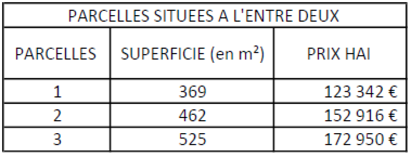 Lot no2 : superficie d’environ 462 m2 au prix de 152 916 € HAI.