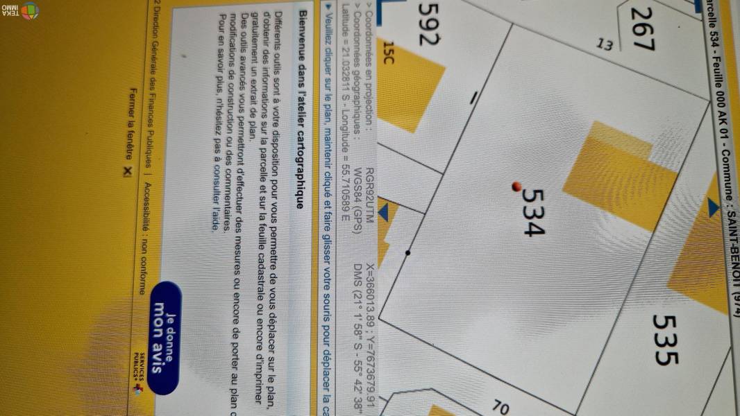 terrain constructible de 760M2, hauteur de construction 15 mtres, COS 80% , largeur: 21,50m, longueur:34m, situ au centre ville de st-benoit proche toute commodits 2 minutes de la marie et de la 4 voies, Ce bien vous est propos au prix de 380000 euros, honoraires la charge DU VENDEUR . DPE non requis. Contactez votre Agent mandataire Teka Immo KADER EI au [coordonnées réservées] ou [coordonnées réservées] inscrit au tribunal de Saint Denis sous le numro R.S.A.C 812 383 531.Annonce rdige sous la responsabilit ditoriale de l'agent. Barme visible sur le site de Teka Immo. http://www.tekaimmo.fr/pdf/honoraires.pdf Les informations sur les risques auxquels ce bien est expos sont disponibles sur le site georisque : www.georisque.gouv.fr\n