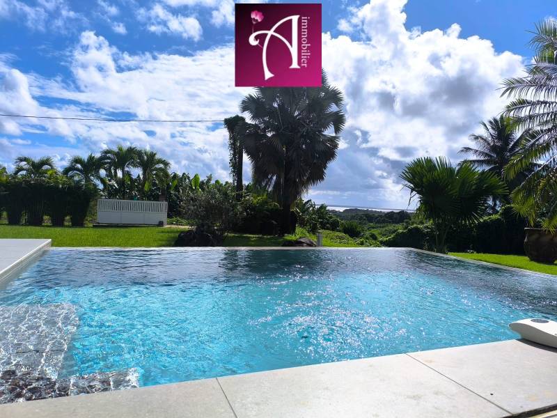 En quête de calme et de pleine nature. Cette maison de famille est faite pour vous. A 2 minutes de la nationale, nous vous présentons cette propriété nichée au coeur d'un parc verdoyant avec de nombreux arbres fruitiers ( avocatiers, citroniers, bananiers...). Elle se compose au RDC, d'une cuisine ouverte sur le séjour,d'un cellier, d'une immense terrasse donnant sur la piscine au sel à débordement, face à la campagne et la mer. Deux chambres avec chacune sa salle d'eau privative. L'étage est consacrée entièrement à l'espace parentale avec un dégagement pour le rangement et un coin bureau.